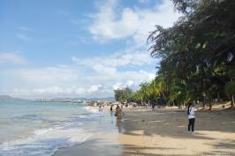 三亞灣度假區(qū)緊挨三亞市區(qū),綿延22公里。三亞灣灣長沙細(xì),岸上綠樹如帶,構(gòu)成三亞濱海旅游城市美麗動(dòng)人的風(fēng)景線。三亞灣的水質(zhì)和沙灘不如亞龍灣與大東海,但勝在地理位置靠近市區(qū)和鳳凰機(jī)場,交通便利;夕陽西下時(shí),來海邊觀潮,椰樹在四周有節(jié)奏的輕擺,濃烈的余暉映照在臉龐,也是十分浪漫的體驗(yàn)。