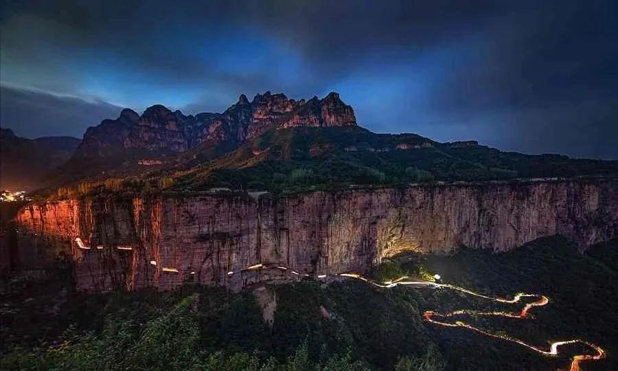 晚上我們?nèi)胱」链寰访袼?,晚上可以閑逛郭亮村,新上郭亮絕壁長(zhǎng)廊夜景。