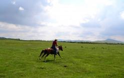美、靜、涼是樺皮嶺給大家的最深刻印象。如果說翠云山因景觀變化給人一種豁然開朗的驚喜的美,那么樺皮嶺則是始終開闊博大恬靜,充滿野趣的美。遠處騾馬靜靜地啃草,滿眼的綠色、野花的芬芳、牛糞的氣息描繪著草原和山林的粗獷原始。由于地廣人稀,這里安靜得出奇,我甚至能夠聽見自己的心跳聲。逃離了大都市的浮躁喧囂的我們在這樣的環(huán)境中倍感舒適愜意。