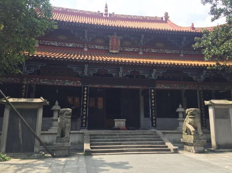 麓山寺又名慧光寺、萬(wàn)壽禪寺,位于湖南省長(zhǎng)沙市湘江西岸岳麓山山腰,由敦煌菩薩笠法護(hù)的弟子笠法崇創(chuàng)建于西晉武帝泰始四年(公元268年),距今已有1700多年的歷史,是佛教入湘最早的遺跡,現(xiàn)為湖南省重點(diǎn)文物保護(hù)單位和湖南省佛教協(xié)會(huì)駐地。麓山寺是中國(guó)佛教史上著名的道場(chǎng)之一?!皾h魏最初名勝,湖湘第一道場(chǎng)”這一楹聯(lián)更是體現(xiàn)了當(dāng)時(shí)麓山寺的地位。