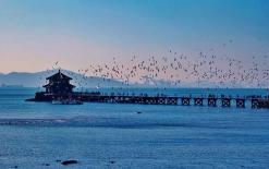 棧橋兩邊有鐵鏈護欄和蓮花路燈,游人漫步于棧橋海濱,風(fēng)平浪靜時,可觀看海鷗在此自由翱翔。走到橋的盡頭還可遠眺小青島。島上樹影婆娑、綠蔭成群,一座白燈塔亭亭玉立。