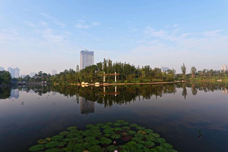 湖心島上主要有景觀塔、休閑茶室、文化長(zhǎng)廊等景點(diǎn)工程。湖心島周圍主要在新月廣場(chǎng)、三元廣場(chǎng)、九曲長(zhǎng)橋、親水平臺(tái)、景觀橋等景點(diǎn)工程。