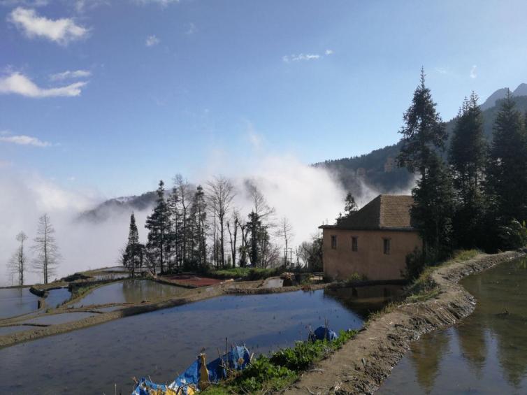 梯田像版畫一樣,顏色多變,特別是日出之際,變化的顏色讓人目不暇接,而煙雨迷霧下若隱若現(xiàn)的村莊,則是現(xiàn)實(shí)中的夢(mèng)幻仙境。