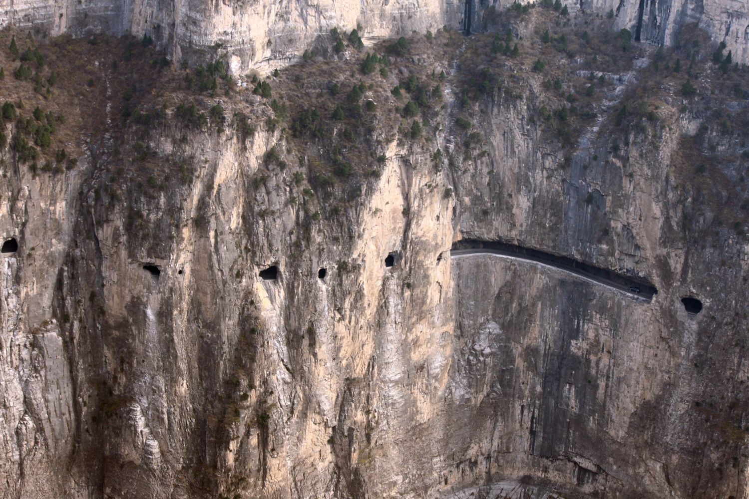 這些公路貼著峭壁開鑿,相隔十來米開一側(cè)窗,因為地處絕壁險境,自然就構(gòu)成一種美景。