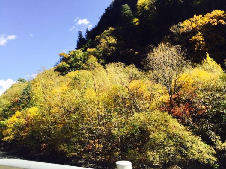 此時大部分樹葉都已經(jīng)完全變色,有的是金燦燦的黃,有的是漫山遍野的紅,再加上其它的顏色作為過渡和點綴,九寨溝儼然成了一個上帝的調(diào)色盤。
