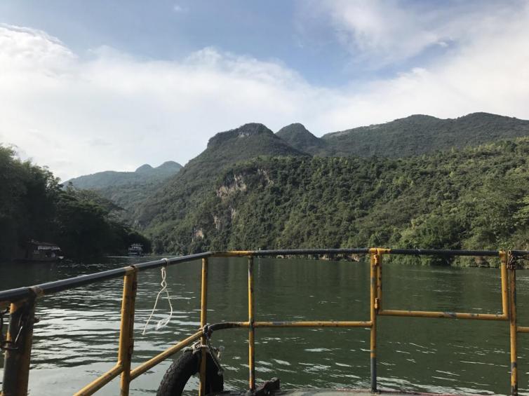 湟川三峽的游船可以坐二十多個(gè)人,一般一條船不會(huì)坐滿,這樣游客可以隨便在船里移動(dòng)拍照。每船都有導(dǎo)游講解沿路景觀。
