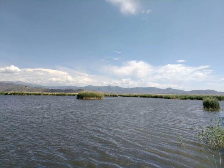 賽里木湖像一顆璀璨的“藍(lán)寶石”,四周被群山環(huán)繞,天水相映;春夏季節(jié),湖畔廣闊的草地上,牧草如茵、黃花遍地、牛羊如云、牧歌悠悠、氈房點點、構(gòu)成一幅充滿詩情畫意的古絲路畫卷。
