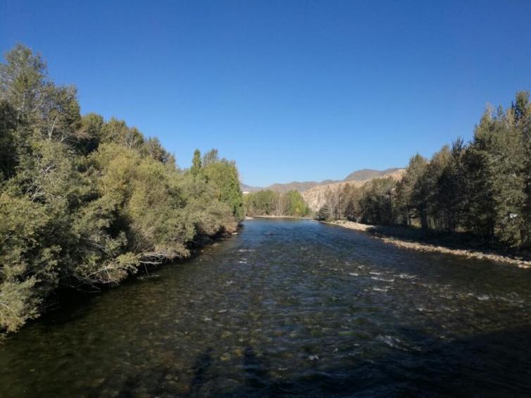 這里是 “一河隔兩岸,風(fēng)景兩重天”,一邊是蔥郁的樹林,另一邊是光禿禿的石頭生。在幾乎寸草不生的河灘上出現(xiàn)了紅、綠、紫、黃、棕等鮮艷的色彩。在河水的映襯和夕陽的照射下,當(dāng)你走進(jìn)這高低起伏的“丘陵”地帶,就如同走進(jìn)一個五彩斑斕夢幻般的世界。