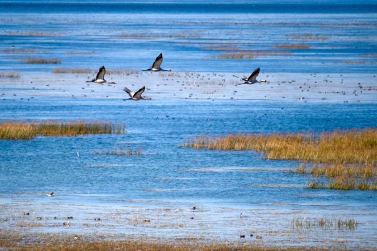 秋天是草海最美的季節(jié),上百種數(shù)十萬只各類候鳥遷徙而至,水面上候鳥飛舞盤旋,草海畔人們靜觀遠望,愜意和諧。