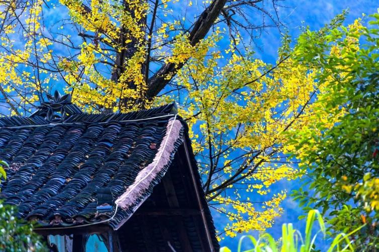 再沒有比銀杏更適合秋天的顏色了,走進依山傍水的妥樂村,滿目盡是金色的世界,一顆顆古銀杏樹,如晶瑩剔透的黃瑪瑙。