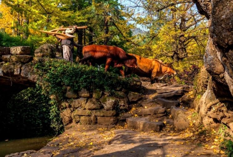 這里流水潺潺,古樹綿綿,石橋古寺,無疑是展現(xiàn)絢爛秋日風情的最佳之地。