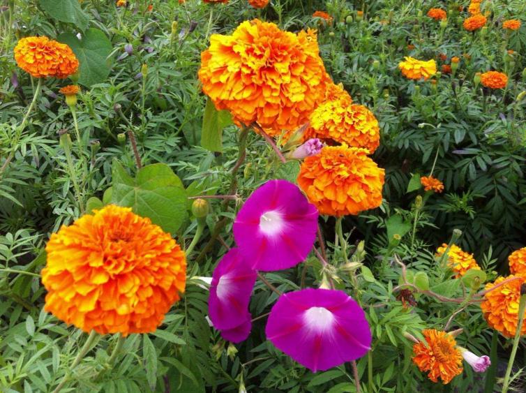 麗江的花海一般分布在玉龍雪山腳下的東巴谷一帶和文筆海一帶,順著上雪山的路很快就能看見東巴谷門口競相開放的的格?;?,與木結(jié)構(gòu)的納西民居建筑融合在一起,一派庭院門前一片花的感覺。除了格?;ǎ谟颀堁┥侥_下數(shù)千畝的萬壽菊在山野間競相開放,天地四野好像都被染盡了一片金黃,此情此景構(gòu)成了一幅極具視覺沖擊力的震撼畫面。