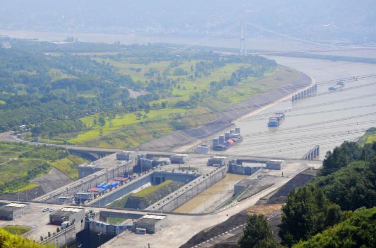 185觀閘平臺(tái)因與大壩等高而得名,站在此處觀閘的感受,比在壇子嶺上來得更加震撼,不僅能看到長(zhǎng)江上游的水位,還能清楚地看見主體建筑。