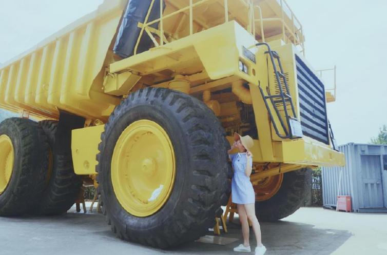 截流紀(jì)念園區(qū)內(nèi)有記事墻,大型機(jī)械,原址上遺留物料等展示區(qū)。這些大型機(jī)械有多大型呢?為了更直觀,我只好湊近來個(gè)大對(duì)比啦!是的,我沒有一個(gè)車輪高。
