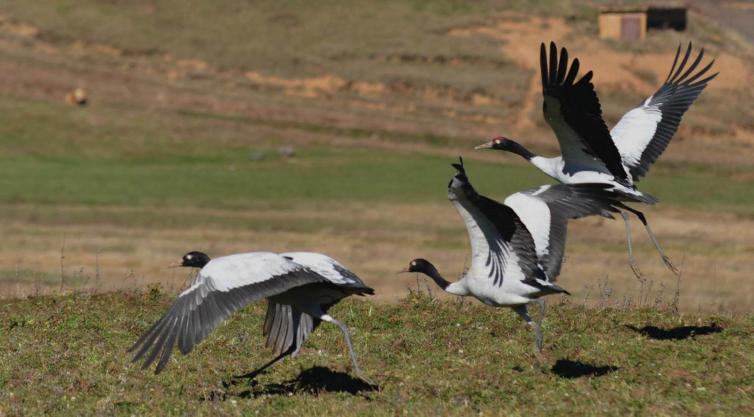 每年十月底都會有大批的黑頸鶴從遙遠(yuǎn)的青藏高原遷徙到這里越冬,第二年四月初離開。2003年,大山包國家級黑頸鶴自然保護(hù)區(qū)成立,從此,大山包便成了黑頸鶴的樂園。大山包主要有兩個景點,大海子冬天的黑頸鶴和雞公山的云海。