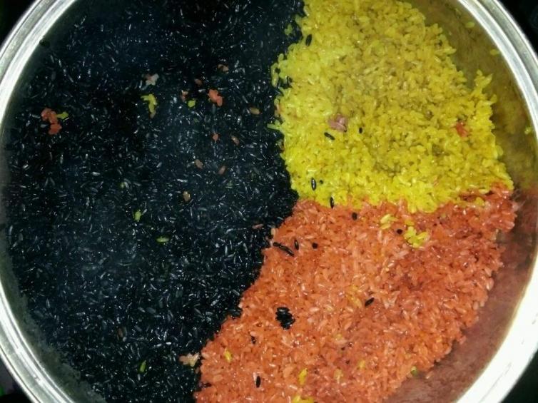 五色米飯是布依人的專利,五彩斑斕的顏色加濃郁的香味,感官上便令人食欲大增。顏色一般有紅、黑、紫、白、黃五種。冷熱皆宜,加點蜂蜜便是喜甜食者的最愛。