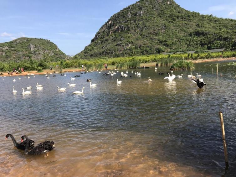 普者黑:小桂林因《爸爸去哪兒》廣為人知。典型巖溶地貌,水上荷塘萬畝,島上蒼翠綠蔭,渾如“桃源勝境”。這里有仙人湖、火把洞、彝族文化生態(tài)村、情人湖、十里荷花湖......荷葉、湖水、孤峰群組成的美麗的湖光山色。普者黑村路邊的萬畝桃園,每年的2-3月份期間,這里繽紛的紅色把這畫卷的山水美景渲染成一片一片火紅的紅色,十分漂亮!