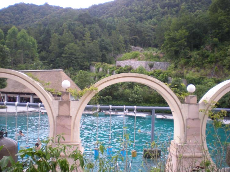 云瑤谷是度假村內(nèi)的溫泉區(qū),據(jù)說這里的溫泉源自千年噴涌的青崗溫泉,附近瑤胞與客家村民數(shù)千年都用此泉洗浴,其周邊山巒疊翠,地層水網(wǎng)交錯(cuò),泉水取之不盡,用之不竭,是名副其實(shí)的養(yǎng)生溫泉。