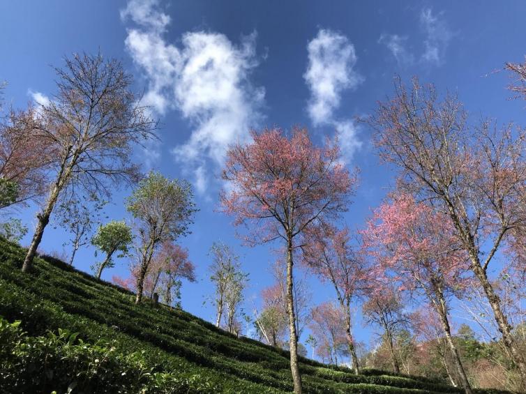 這里依然春色盎然,一株株粉嫩的櫻花開滿了山谷,像落入凡間的仙子,在千畝茶園中爭奇斗艷,絢爛綻放。約上三五好友漫步茶園,一簇簇的粉色櫻花點(diǎn)綴在碧波蕩漾的茶樹上,賞心悅目又沁人心脾,實(shí)在美哉!