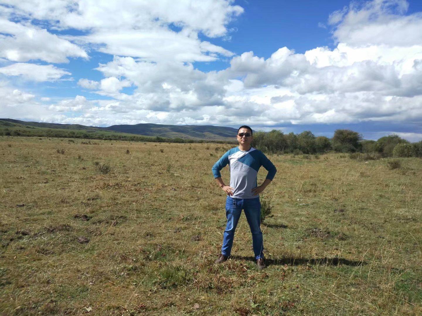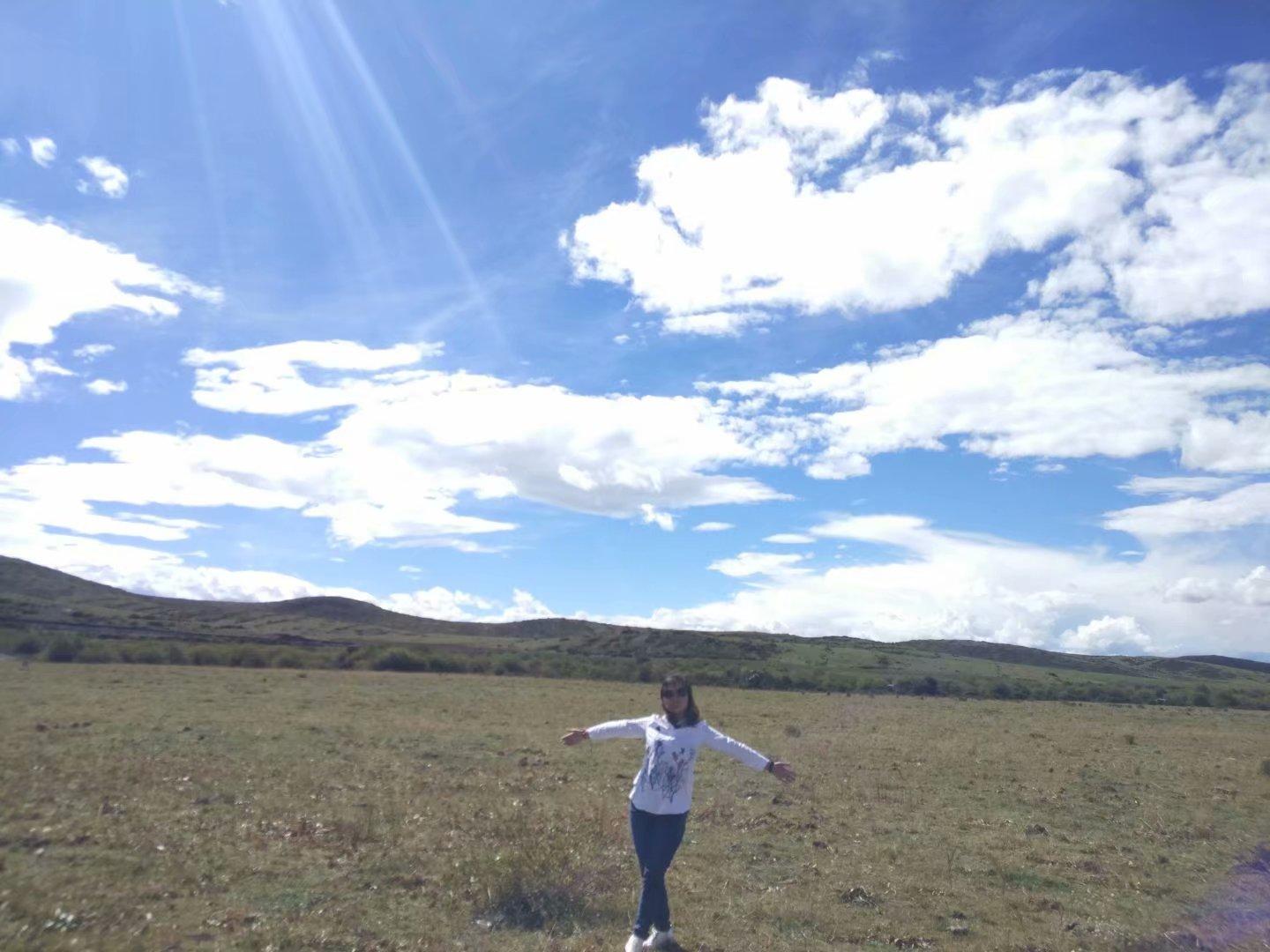 蔚藍的天、潔白的云、青黃相間的草地、星星點點的格?;?、成群的牛羊、純樸悠閑的牧民。一望無垠的草原風光就這樣跳進眼來,人在旅途,心之怡然......
