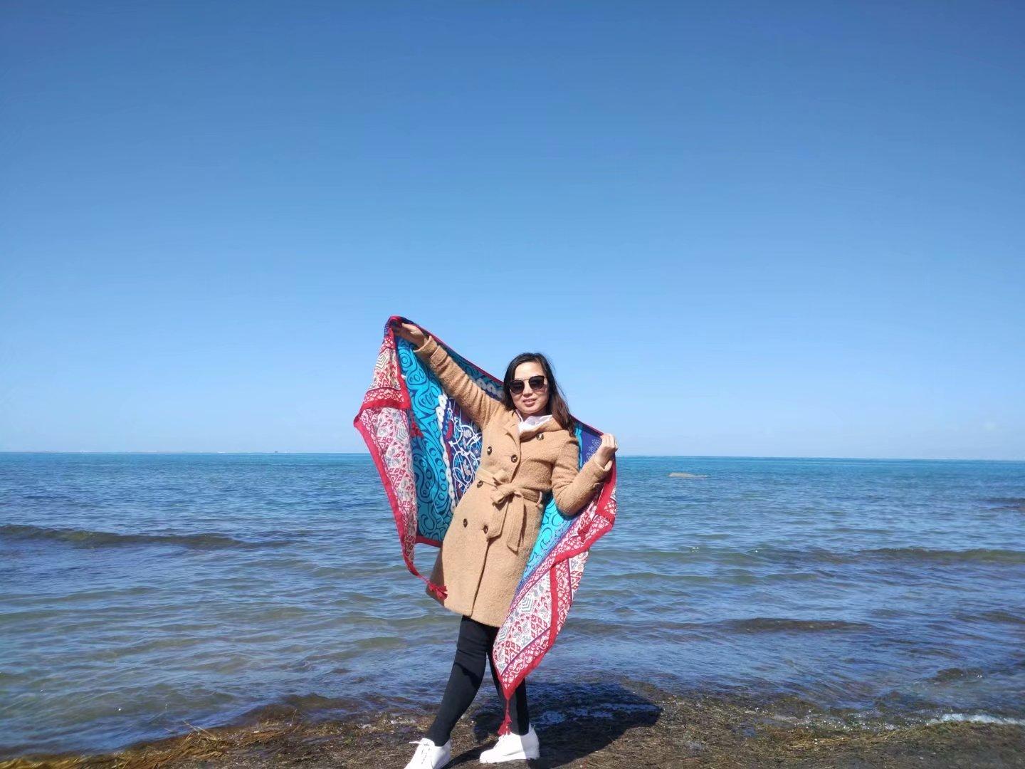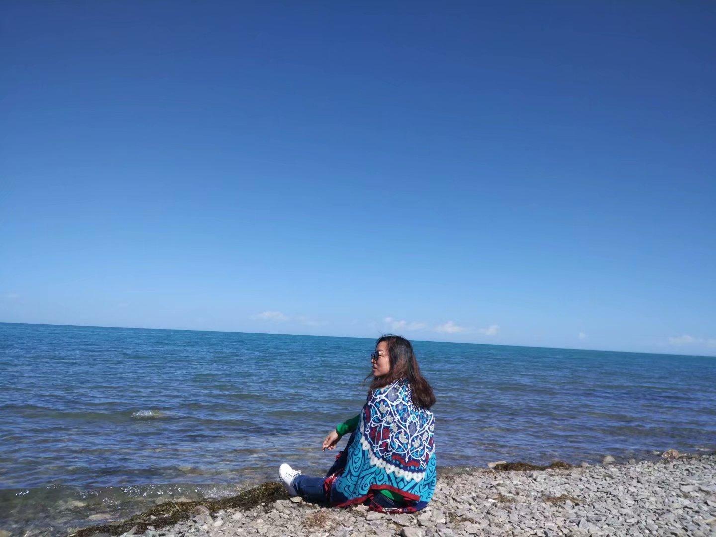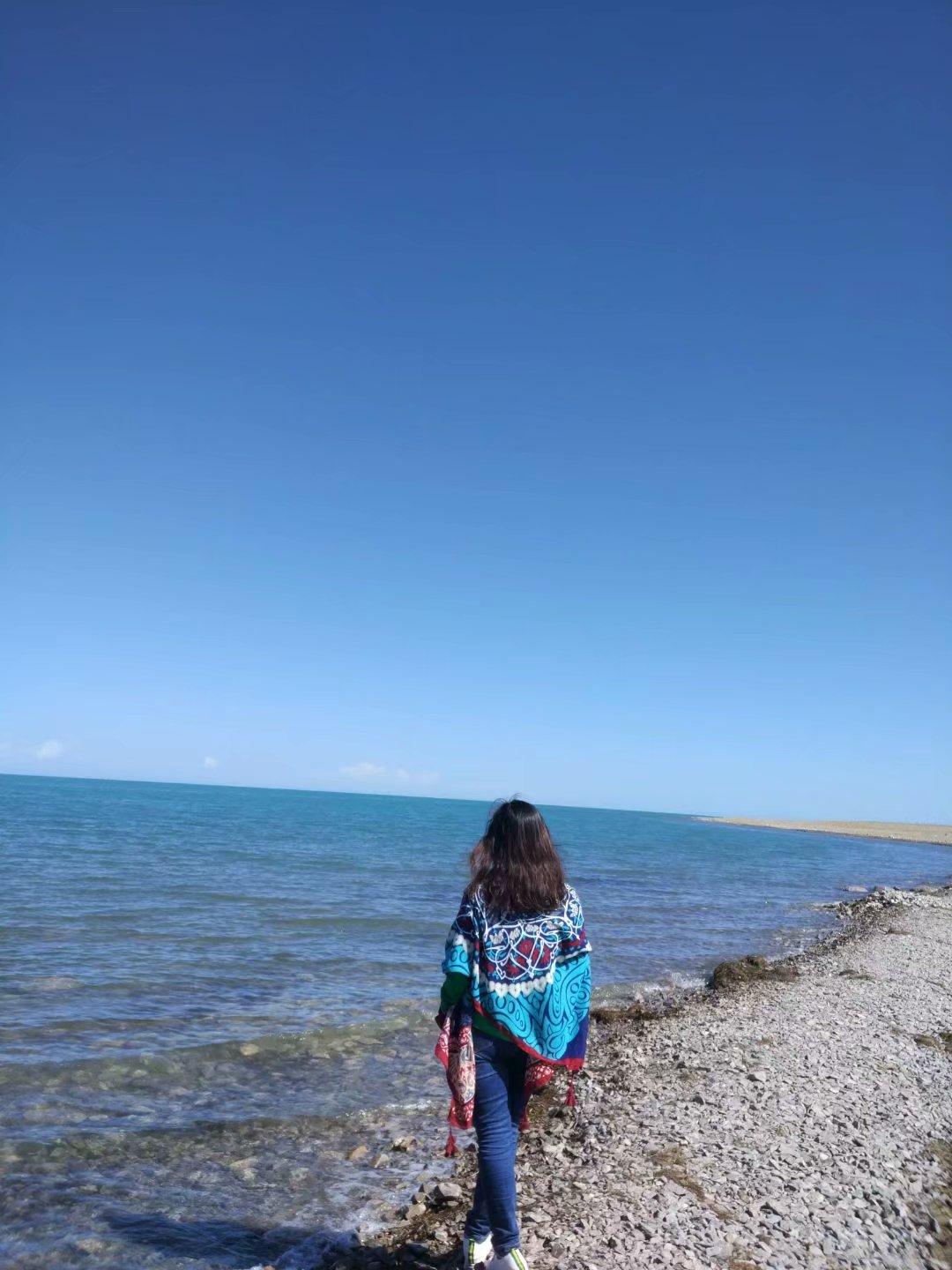 早餐后從西寧出發(fā),一路上大多感受的是大西北的荒涼感。穿越、靠近,當視線里漸漸露出藍色天際的時候,心情像蔚藍的湖面一樣越來越寬,天之涯,湖之藍!蔚藍色的天際、遼闊的草原、柔軟的白云相互襯映,這是怎樣一種壯美,不得不讓人驚嘆,他們都說這個季節(jié)不是青海湖最美的樣子,沒有看到她的鳥語花香,沒能體會她的千變?nèi)f化,但是成群牛羊、草地黃花、她的浩瀚、她的深藍、這樣的畫面依然驚艷了我!她像清靜典雅的少女給我安靜的美!
