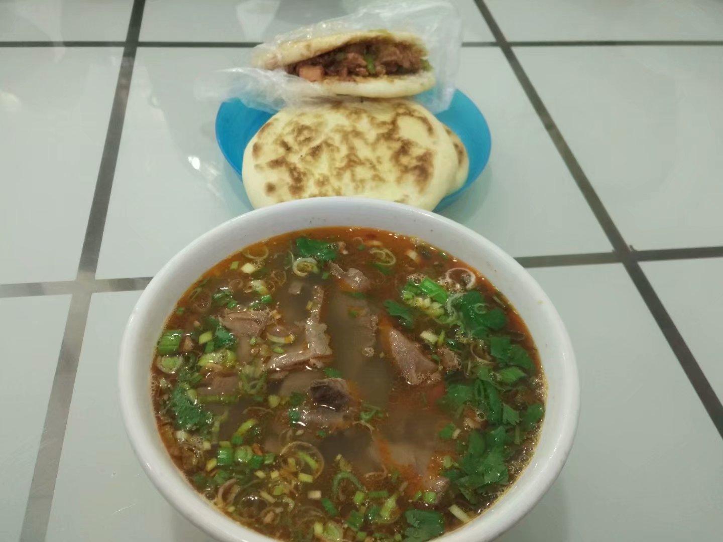 為了等妹妹一家來匯合,今天決定放慢行程,去蘭州,早上舒服的睡到快九點才起床,兩次夜宿西寧,沒有美景,美食不能辜負,賓館樓下一個干凈的早餐店。老板特別和氣,熱情的推薦當?shù)氐拿朗?,我們點了西寧美食排名第一的牦牛大骨湯,一大碗里面的牛肉真心豐富,老板良心??!必須點贊,肉質(zhì)特別細嫩。湯頭濃郁,青香可口,配的餅外面一層薄脆,里面軟香,特別上口,現(xiàn)在寫這段文字,都還有吞口水的感覺。真心沒有辜負美食排名第一!