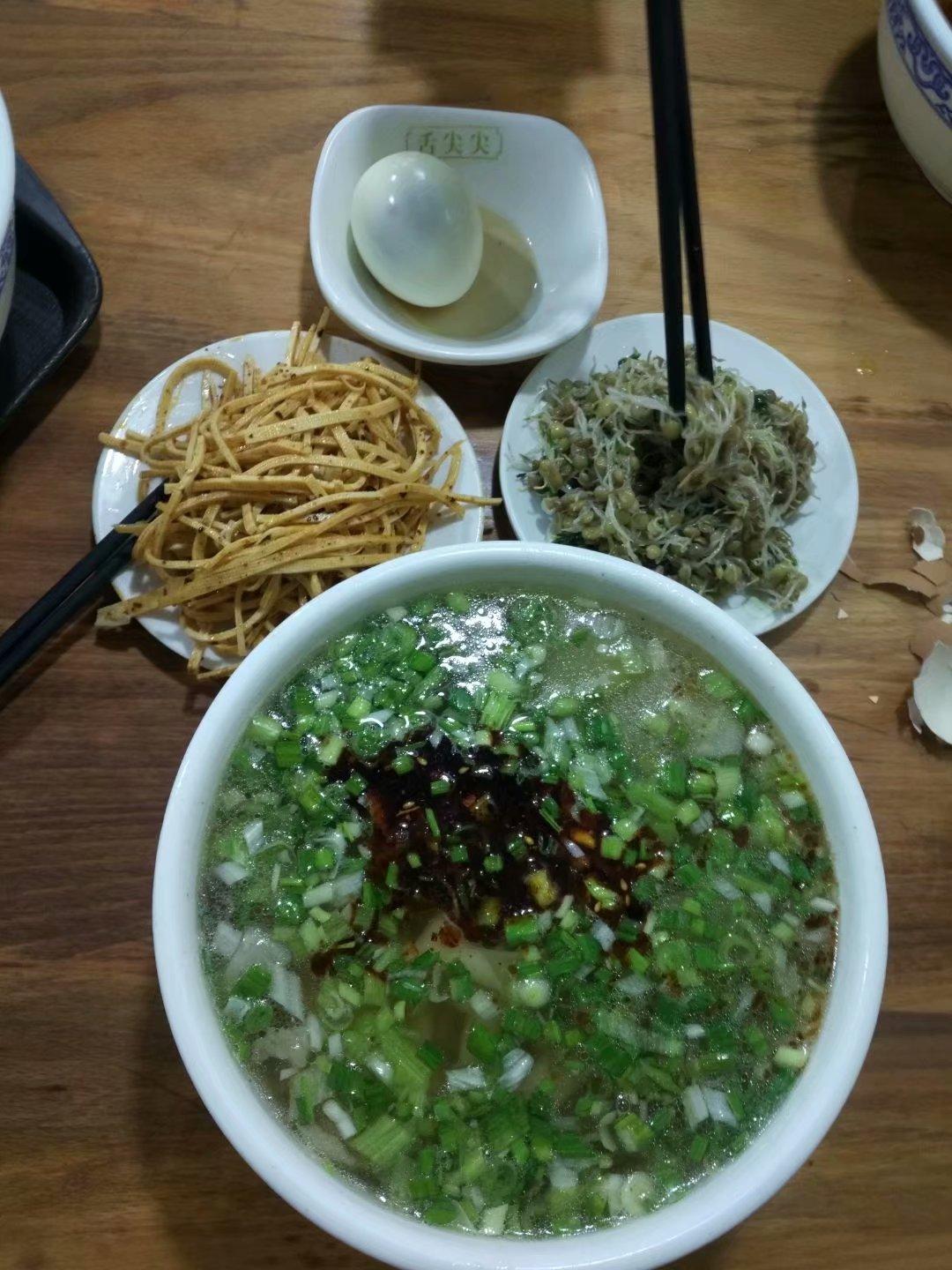 其實后才知道他們的牛肉面配茶葉蛋也是他們美食排名前幾位,第一次住西寧的那個早餐,我們就是這樣吃的,只是可惜只是面沒有茶葉蛋的圖片了。比起面,我還是更喜歡大骨湯,一套才十五元,真心實惠,想念那牛肉