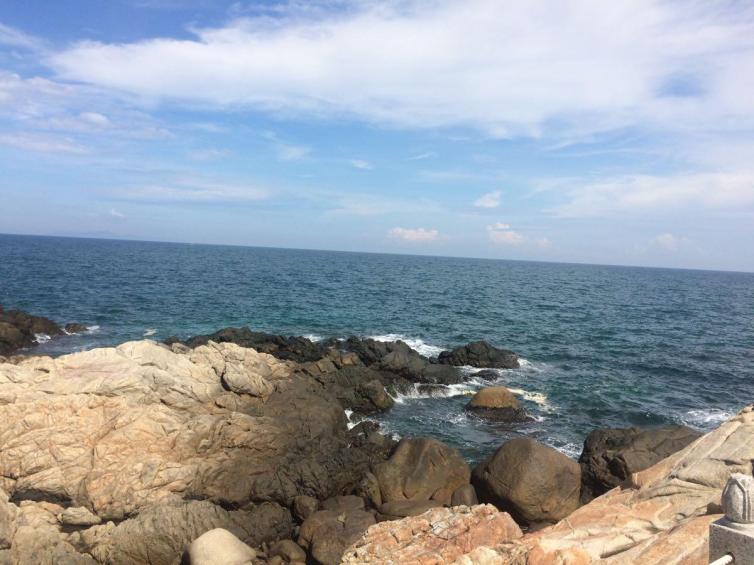 觀日巖:觀日巖位于蜈支洲島的東南懸崖處。站在巖上憑海臨風(fēng),俯瞰全島,遼闊的南海盡收眼底。懸崖下面,怪石嶙峋。 風(fēng)平浪靜之時(shí),乘快艇環(huán)島游,石景千奇百怪,觀日巖像一尊天然大石佛,面向大海,日夜修煉。觀日巖又像一只巨龜緩緩爬向大海,期望回到自己的故鄉(xiāng),故又稱金龜探海。新世紀(jì)的第一縷曙光從這里升起,緋紅的太陽(yáng)從海面上徐徐上升,形成一絕佳的海上觀日點(diǎn)。每逢風(fēng)起,激浪拍石,這一帶浪峰高高達(dá)十幾米。浪峰過后,海面上一片雪白的浪花,那才叫"卷起千堆雪"呢。