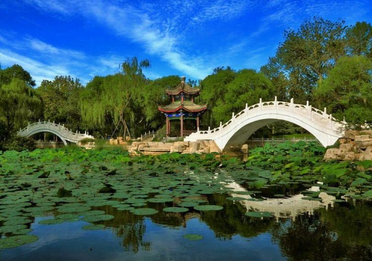橋園國家AAA級景區(qū),是天津市最大的人造生態(tài)濕地公園,因為是衛(wèi)國道立交橋邊的一個大型綠地,故名橋園。公園面積400畝,其中生態(tài)水域面積近200畝,種植各類植物60余種,容積率不到0.04,具有無可比擬的生態(tài)優(yōu)勢。創(chuàng)意橋園旨在打造以“生態(tài)時尚為特色、休閑旅游為核心”的生態(tài)創(chuàng)意型公園。在西班牙巴塞羅納舉辦的2009年世界建筑節(jié)上,創(chuàng)意橋園榮獲“全球最佳景觀獎”,這是中國城市公園第一次獲此殊榮。
