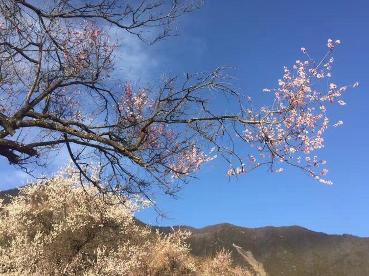 繁花似錦的野桃林,將湛藍(lán)的天空與碧玉般的尼洋河之間串聯(lián)成片,給林芝帶來了一片壯麗的春天。