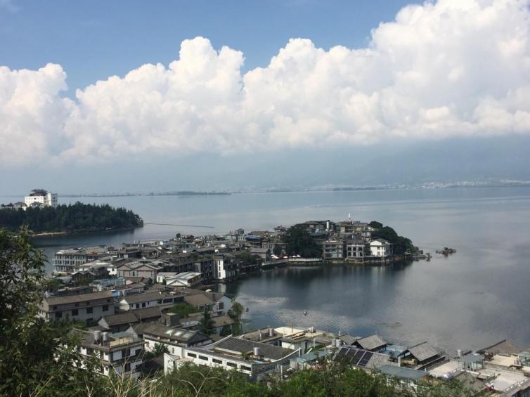 早上觀看十三迎賓塔、日照金山后返回香格里拉,大約下午6點到達(dá)大理雙廊。雙廊可以20元一位坐小船游覽幾個小島。另外就是去比較出名的“海地”拍照。