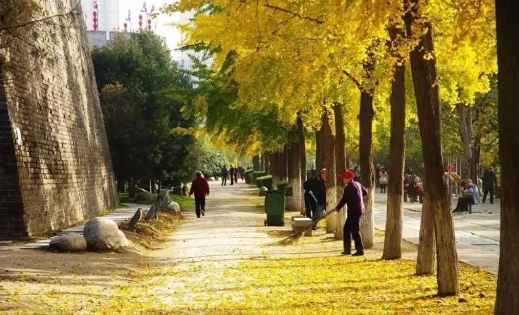 西安環(huán)城公園是市民晨練的不二之選,沿著 明城墻建筑 的環(huán)形公園,每到這個(gè)時(shí)節(jié),園中的銀杏樹(shù)都成為了游客觀賞的景點(diǎn)之一。
