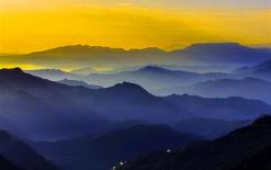 遠(yuǎn)山如黛,層層山霧彌漫,站在觀景臺上眺望,就像走進(jìn)一幅潑墨的山水畫一般,很有意境。