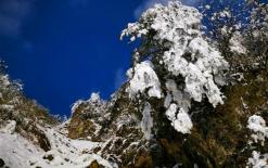 流水潺潺帶來清涼,呼吸吐納之間都是干凈新鮮的空氣,薄薄的雪將彩林輕輕點(diǎn)綴,煞是好看。