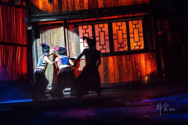 《坐妹》是侗族青年男女交際和戀愛(ài)活動(dòng)方式,又稱(chēng)“行歌坐夜”。通過(guò)耗資7000多萬(wàn)元精心打造的侗族大型風(fēng)情音畫(huà)實(shí)景演出《坐妹》生動(dòng)地再現(xiàn)這一幕,堪稱(chēng)經(jīng)典。演出通過(guò)侗族大歌、喊姑娘、鬧姑娘、坐姑娘、姑娘節(jié)、多耶團(tuán)圓6個(gè)篇章及鼓樓、橋、吊腳樓的舞臺(tái)變化,是侗鄉(xiāng)的靈魂之作。