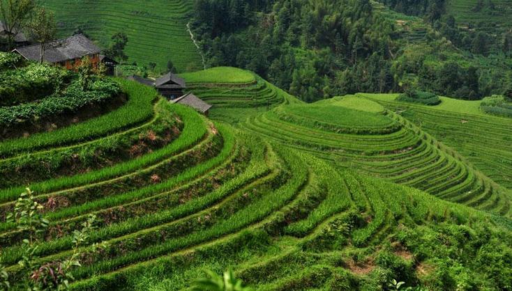 龍脊梯田位于廣西龍勝各族自治縣龍脊鎮(zhèn),從廣義上說(shuō)叫龍勝梯田。龍脊梯田整齊有序,線條豐富多彩,線條形狀以曲線為主,曲線賦于人們一種動(dòng)態(tài)美,尤其是那些長(zhǎng)長(zhǎng)的曲線和波浪線,使人聯(lián)想到這些梯田好像是天上飄落的彩帶。 這里溪流眾多,水源充足,山上植被四季常青。山寨的房屋是清一色的吊角樓,錯(cuò)落有序的山寨與大山融為一體,古樸清雅,畫(huà)意十足,來(lái)到金坑大有返璞歸真、回歸自然之感。