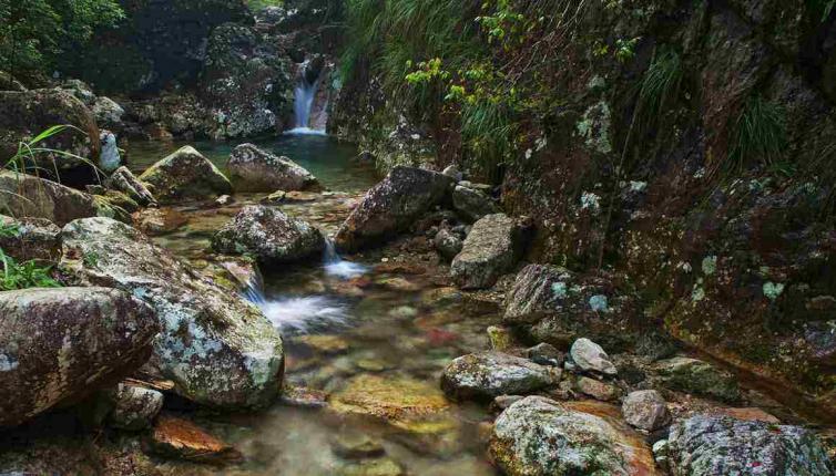 如果西天目是以植物資源取勝,那么大明山則是在“巖石造型”上有天然的優(yōu)勢。大明山山中多奇峰異石,有“和尚取經(jīng)”、“金蟾望月”、“龜豹鯨”等,造型各異,維妙維肖。由于與黃山只相隔70公里,所以這里的氣候條件及地質(zhì)條件與黃山類似,人稱“浙江小黃山”。霧山云海是大明山經(jīng)成見的景色,飛瀑群更令人叫絕。