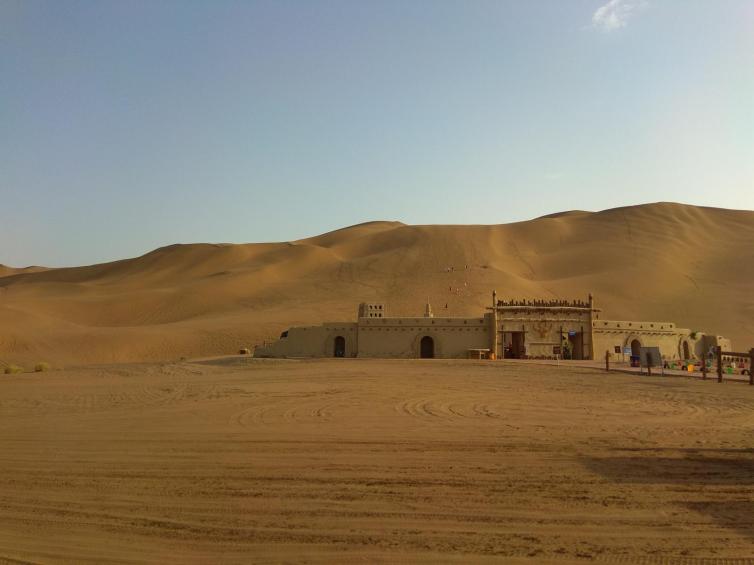 “有沙山的沙漠”是這里的一大獨特景觀。偶爾還能看到當地人帶著駱駝隊伍走過。
