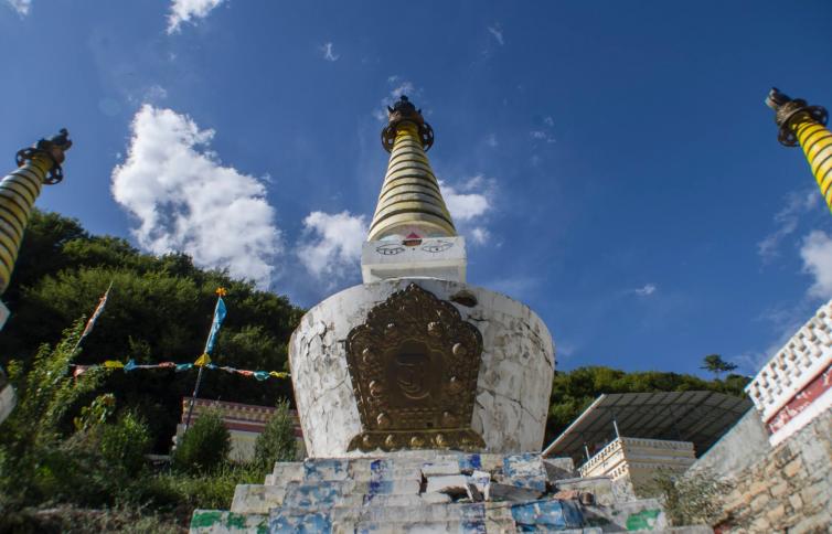 桑登寺是紅教寧瑪派白玉寺分寺,位于孟屯河谷上孟鄉(xiāng)日波寨,由雅弘竹巴大師(活佛)修建于公元1435年,距今有五百多年的歷史,寺廟的地理位置相當(dāng)特殊,喀爾什古神山從阿壩州黑水縣延綿幾百公里,到日波寨就是終點(diǎn),像一條長(zhǎng)龍伏于群山之巔,在桑登寺的位置相當(dāng)于是龍頭。