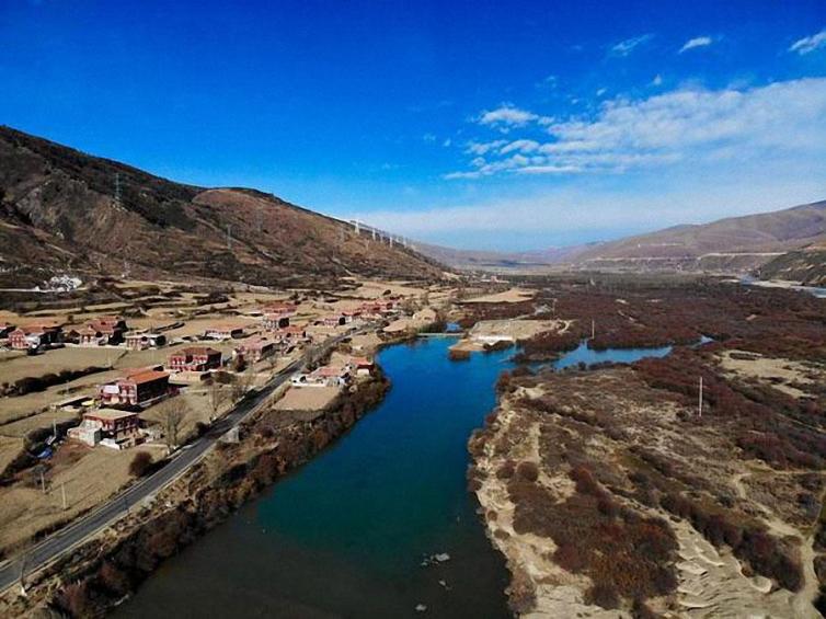 當(dāng)我在路上自駕的時(shí)候,本以為是一路光禿禿的冬景,當(dāng)我駛?cè)氲梨诳h城之后,一大片紅色的樹林出現(xiàn)在我的眼前。這就是爐霍縣的鮮水河國家濕地公園。在找到一處可以停車的地方,趕緊停下來拍拍拍。藍(lán)天白云紅樹林,真的是美極了!