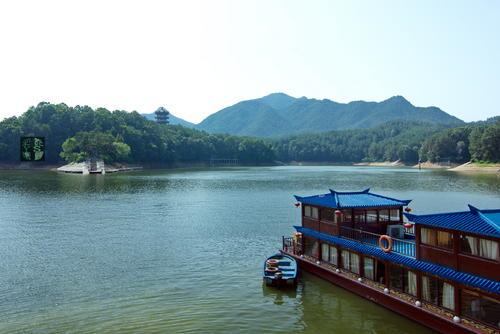 水上游覽區(qū)是年輕人的世界。湖面碧翠如染,青年男女泛舟湖上,笑語盈盈。湖水被七山八溝截分,形成了六七十個(gè)大小不一的湖面,大的上百畝,小的四五十畝,湖與湖相連,當(dāng)游船快速行駛在寬闊的湖面時(shí),山影、云影、樹影一齊在湖中蕩漾。船后泛起層層浪花,引來許多鳥兒緊緊相隨,鳴叫不已,使人興趣盎然。
