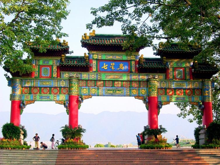 七星巖位于肇慶市,這里以喀斯特溶巖地貌的巖峰、湖泊景觀為主要特色,七座排列如同北斗七星的石灰?guī)r巖峰巧布在湖面上,20余公里長(zhǎng)的湖堤把湖面分割成五大湖,風(fēng)光旖旎。