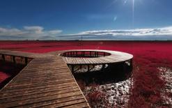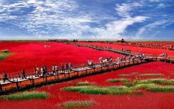 盤錦是“濕地之都”,是遼河入海的地方,也是孕育了天下奇觀紅海灘的美麗城市。風情萬種的堿蓬草將中國最北海岸線裝扮成世界唯一的紅色休閑岸線,紅遍了夢境,紅透了心靈。百萬畝的蘆葦蕩中,丹頂鶴、黑嘴鷗、震旦鴉雀、黑臉琵鷺等珍稀鳥類比比皆是。盤錦是“魚米之鄉(xiāng)”,是全國最大的中華絨鰲蟹集散地,盤錦大米是“中國馳名商標”。湛藍的海水、金色的稻浪、碧綠的葦海、火紅的海灘和黑金石油,構(gòu)成絢麗多姿的盤錦。金秋時節(jié),正是灘紅葦綠,稻香蟹肥的時候,大美盤錦歡迎您!