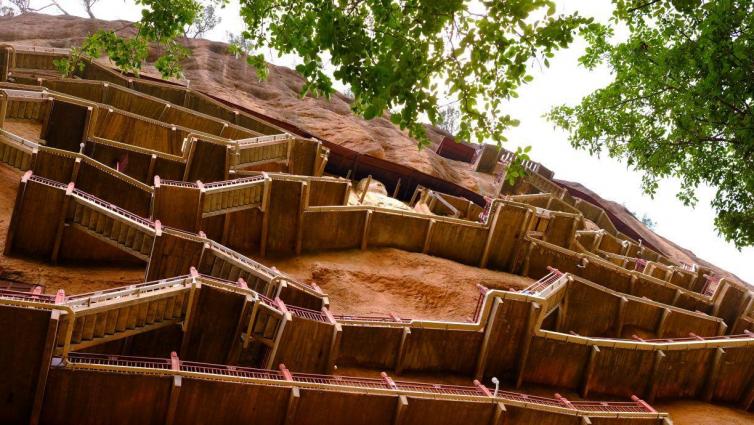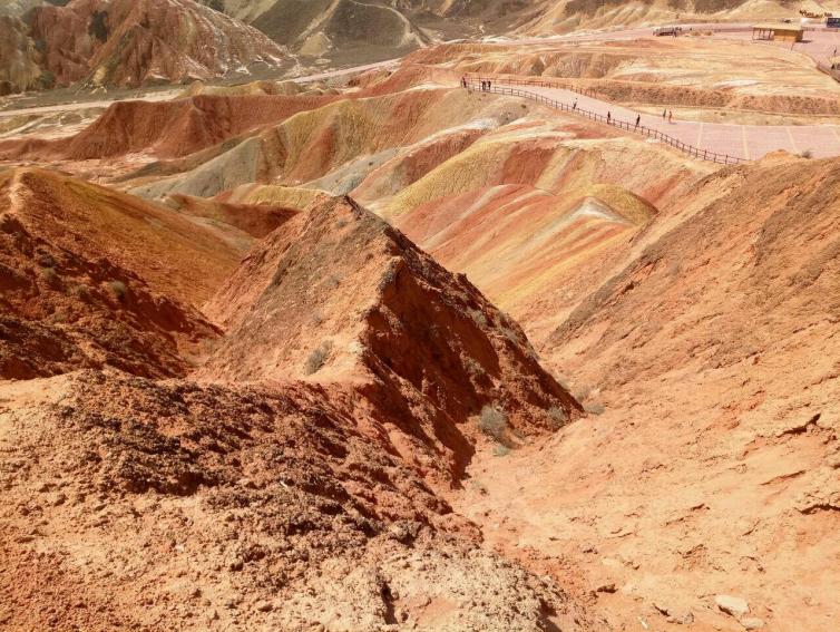 這里被《中國國家地理》雜志評為中國最美的七大丹霞地貌之一。氣勢磅礴的丹霞地貌與彩色丘陵,坐景交入內,共有四個觀景臺,夕陽西下的時候是最美的,可以看到中國最美的日落。