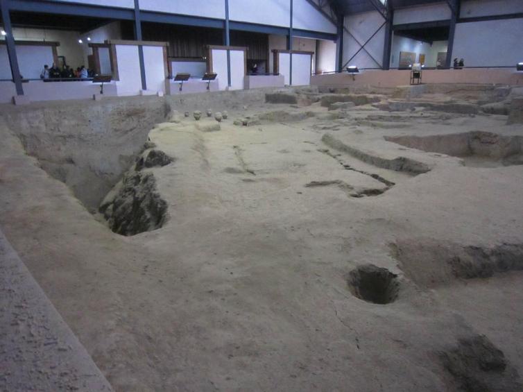 半坡遺址博物館位于西安市東郊浐河?xùn)|岸半坡村北,是中國第一座史前遺址博物館。半坡母系氏族村是半坡博物館陳列的有機(jī)延伸,立體地再現(xiàn)人類母系氏族社會(huì)。里頭的展區(qū)多為情景再現(xiàn),可見遠(yuǎn)古人類生存之艱難。