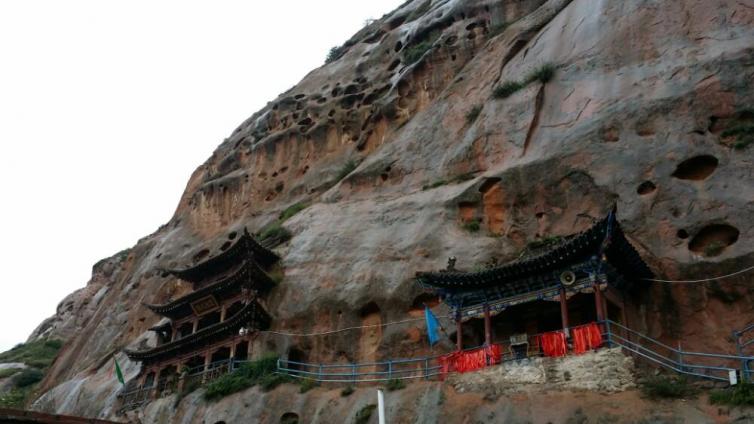 馬蹄寺絕不是如大多數(shù)人想象的那般景象。它是在一面巨大的紅色光禿崖壁,在重重石壁里開(kāi)鑿了七層迷宮般的洞窟,險(xiǎn)峻的山壁建筑讓每一個(gè)見(jiàn)慣江南寺院的游客都嘆為觀止。