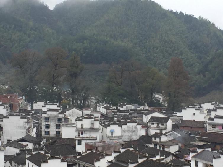 遠(yuǎn)遠(yuǎn)望去,白霧,紅楓,加上典雅的徽派建筑,便構(gòu)成了一個如夢似幻的畫面。