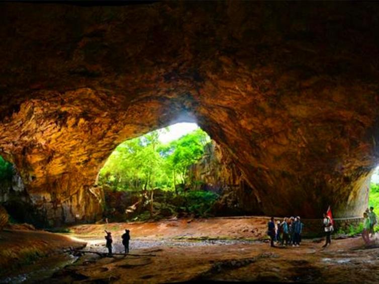 地下倒石林,原名蝙蝠洞,因洞內(nèi)鐘乳石多由洞頂垂懸倒掛又酷似蝙蝠而得名,又因鐘乳石倒長(zhǎng)在溶洞內(nèi),仿佛石林倒掛,更有旁逸斜出之怪石,因此又稱地下倒石林。地下倒石林所在的溶洞空氣清新流暢,氣溫涼爽宜人,仿佛設(shè)有天然空調(diào)一般。