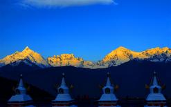 梅里雪山位于云南迪慶藏族自治州德欽縣和西藏的察隅縣交界處的梅里雪山屬橫斷山脈,距離昆明849公里。梅里雪山屬于怒山山脈中段,處于世界聞名的金沙江、瀾滄江、怒江“三江并流”地區(qū),她逶迤北來,連綿十三峰,峰峰壯麗。由于垂直氣候明顯,梅里雪山地區(qū)的氣候變幻無常,雪雨陰晴全在瞬息之間。梅里雪山既有雪域高原的壯麗,又有江南的秀美。藍(lán)天之下,潔白雄壯的雪山和湛藍(lán)柔美的湖泊,莽莽蒼蒼的林海和廣袤無垠的草原,無論在感覺上和色彩上,都給人帶來強(qiáng)烈的沖擊。雨崩是梅里雪山神女峰腳下一個(gè)藏族自然村莊,行走其間頗有曠世桃源之感,真正香格里拉的縮影。雨崩神瀑也歷來是藏傳佛教朝拜的圣地。每年都有數(shù)以千計(jì)的信徒從西藏、四川、青海、甘肅等地千里迢迢趕來朝拜。