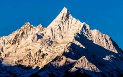 當(dāng)?shù)厝私猩衽澹0?054米,是梅里雪山十三峰之一。她亭亭玉立、氣質(zhì)若蘭,傳說是卡瓦格博山神的妃子。 緬茨姆峰從不同的側(cè)面看,形狀也不相同。從東面觀之,峰頂極似一尖削的金字塔;從東南面觀之,則像一端坐的貴婦人,峰頂俊秀,氣態(tài)高貴。緬茨姆峰的皚皚雪峰之下是成片成片的高山杜鵑灌叢,開花之時(shí)鋪地似錦,更使雪峰分外妖嬈。